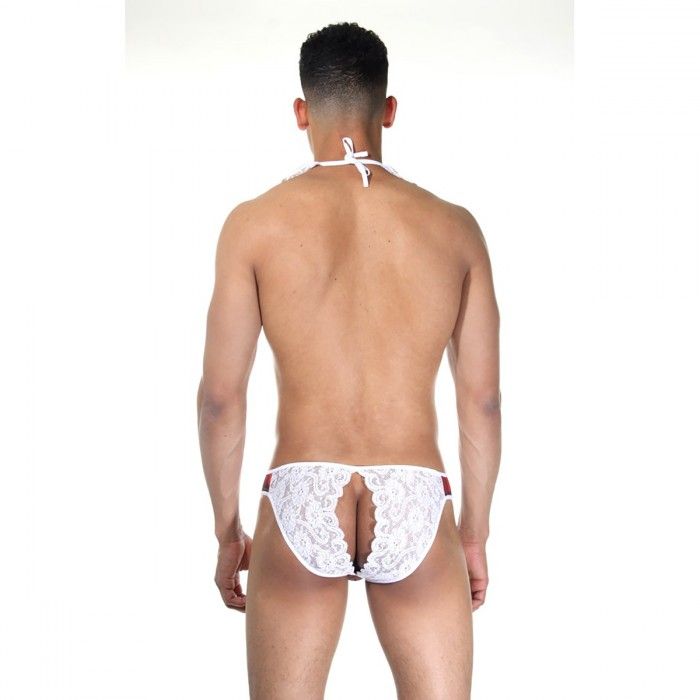 Костюм ученика для мужчин, состоящий из трусов-тонгов в клетку и из белого кружева, и красного клетчатого галстука с белым кружевным воротничком. В комплекте: трусы, воротник с галстуком.