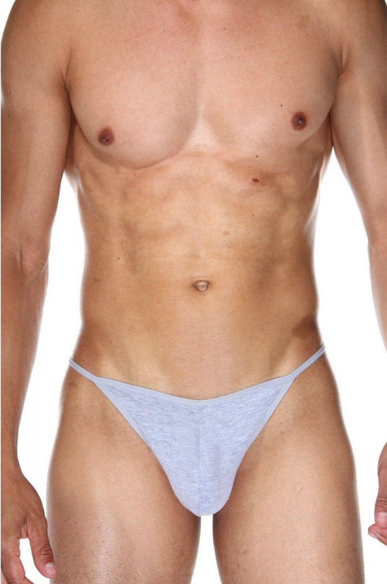 Светло-серые меланжевые трусы-стринги.