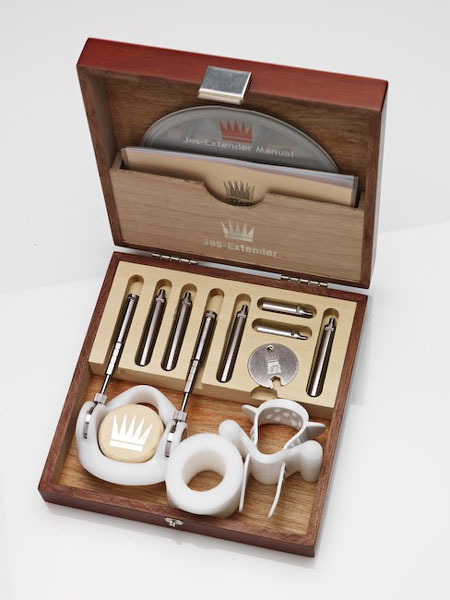 Мужчинам, чтобы увеличить пенис до необходимых размеров или исправить его форму, вовсе не нужно ложиться на операционный стол. Существует не хирургический способ удлинения члена, и это - Jes-Extender. По сути, это аппарат, надеваемый на пенис и предназначенный для безболезненного растяжения тканей. Как показывают клинические исследования, метод растяжения действительно эффективен. При регулярном использовании количество клеток в тканях увеличивается, а значит, член становится как длиннее, так и больше в диаметре. Для начала использования необходимо установить стартовую длину штанг экстендера. Затем надеть Jes-Extender Original на не эрегированный пенис так, чтобы упорное кольцо оказалось у основания члена. После – оттянуть крайнюю плоть, надеть смягчающую прокладку и наложить ремешок-фиксатор. Последний шаг – регулировка натяжения с помощью винтового механизма. Для этого необходимо вращать винты на штангах, выставив величину натяжения по насечкам (600, 900, 1200 или 1500 грамм). В первые 2 недели усилие на растяжение должно составлять не более 600 грамм. При этом суммарное время ношения Jes-Extender в течение дня – порядка 6-10 часов. По истечении 14 дней величину натяжения можно будет увеличить, но только постепенно! Jes-Extender Original – клинически протестированный прибор с подтверждёнными результатами испытаний. Это значит, что при правильном использовании вы гарантированно достигнете результата! Упакован в футляр из красного дерева. Комплектация: удлиняющие стержни (4х5 см, 2х2,5 см), гибридная насадка Comfort (используется ремешок или жгут), фиксирующий ремешок, силиконовый жгут-фиксатор, смягчающая прокладка, упорное кольцо с пружинным механизмом. К товару прилагается DVD-инструкция, инструкция на русском языке, набор ключей.