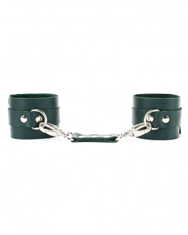 Оковы выполнены из натуральной кожи. Металлическая пряжка крепко удерживает в подчинении, кожаное соединение на карабинах фиксирует наручники вместе, ремни позволяю выбрать нужный размер. Стильный аксессуар поможет воплотить эротические фантазии в реальность.