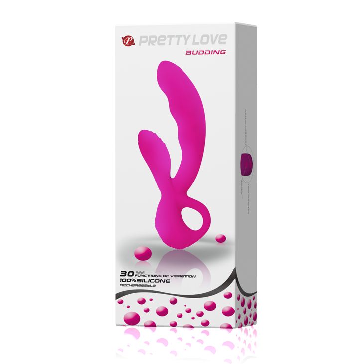 Вибромассажер эргономичной формы, средних размеров. Предназначен для одновременной стимуляции точки G и клитора, на теле массажера имеются три утолщения для точечного приложения вибраций. Имеет увеличенную в диаметре головку с волнообразными ребрышками для стимуляции точки G. Влагостойкий, перезаряжаемый массажер имеет 30 режимов вибрации. Оснащен двумя независимыми моторами. В основании находится кольцо-держатель, для комфортного извлечения. Сделан из гладкого, шелковистого силикона, очень приятного на ощупь. Рабочая длина - 13,5 см.
